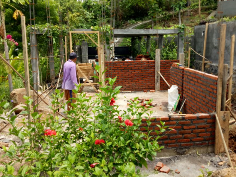 To prevent possible nuisance by frogs and toads (which make noise during the mating season), the pond in front of the veranda of the house has been replaced by a terrace (april 2024).